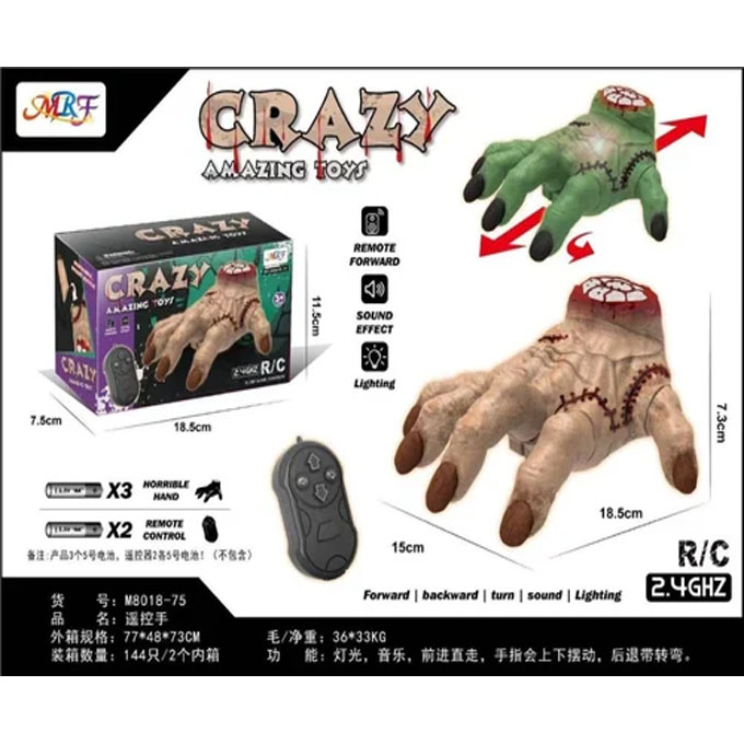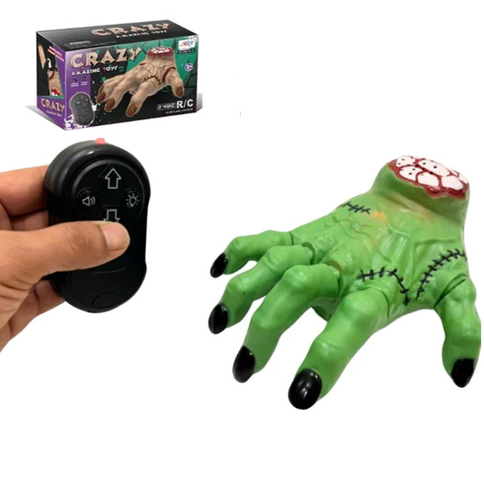 Bring horror and laughter together with the Crazy Amazing Toy Remote Control Crawling Hand! This eerie, life-like zombie hand is designed to crawl, turn, and move forward or backward at your command using the included 2.4GHz remote control. Equipped with realistic sound effects, lighting, and smooth motion, it’s the ultimate toy for Halloween parties, spooky decorations, or harmless pranks.